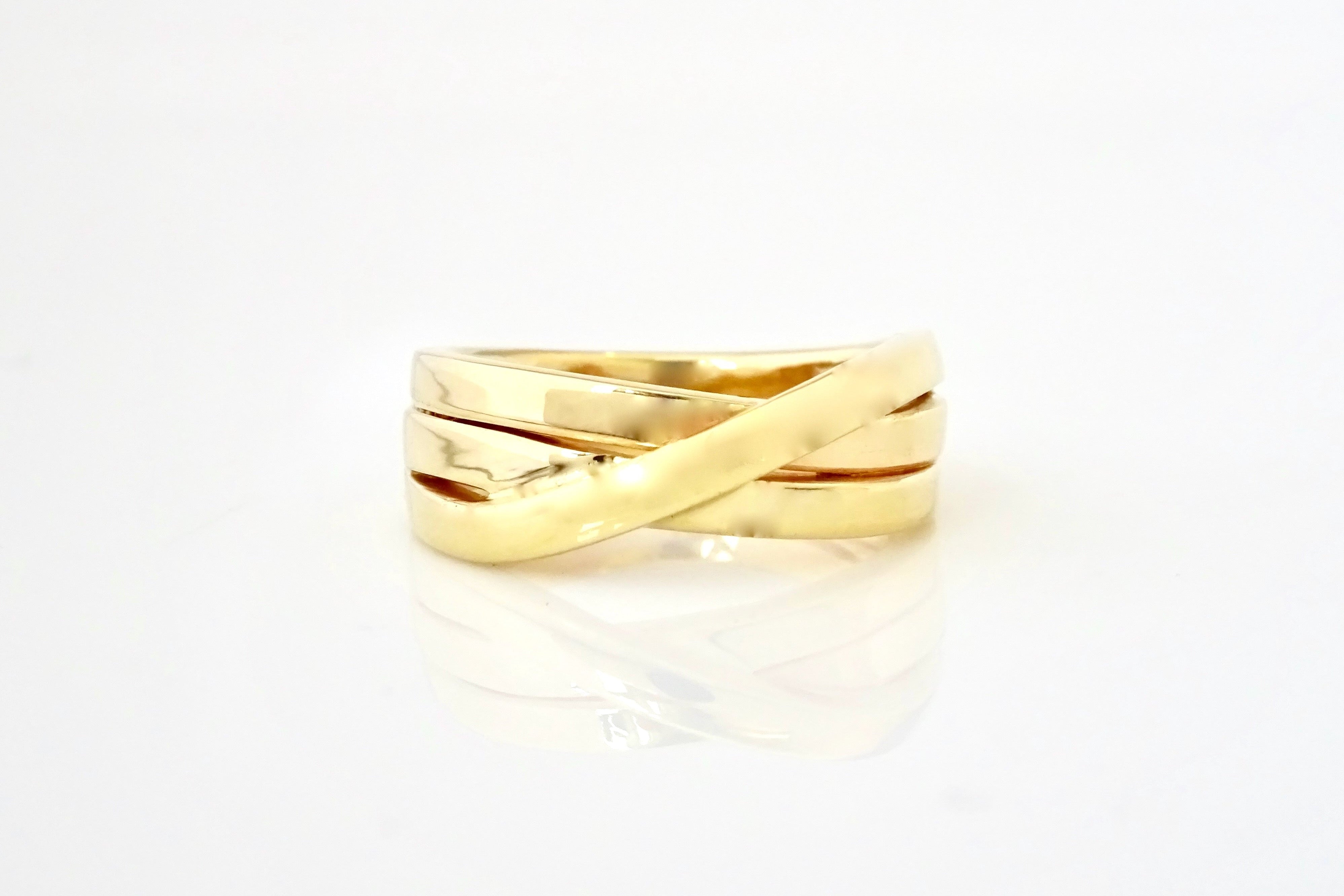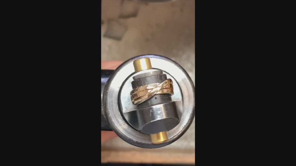 Tiny gemstones and diamonds can be added to the straps. Reach out to customize your ring.