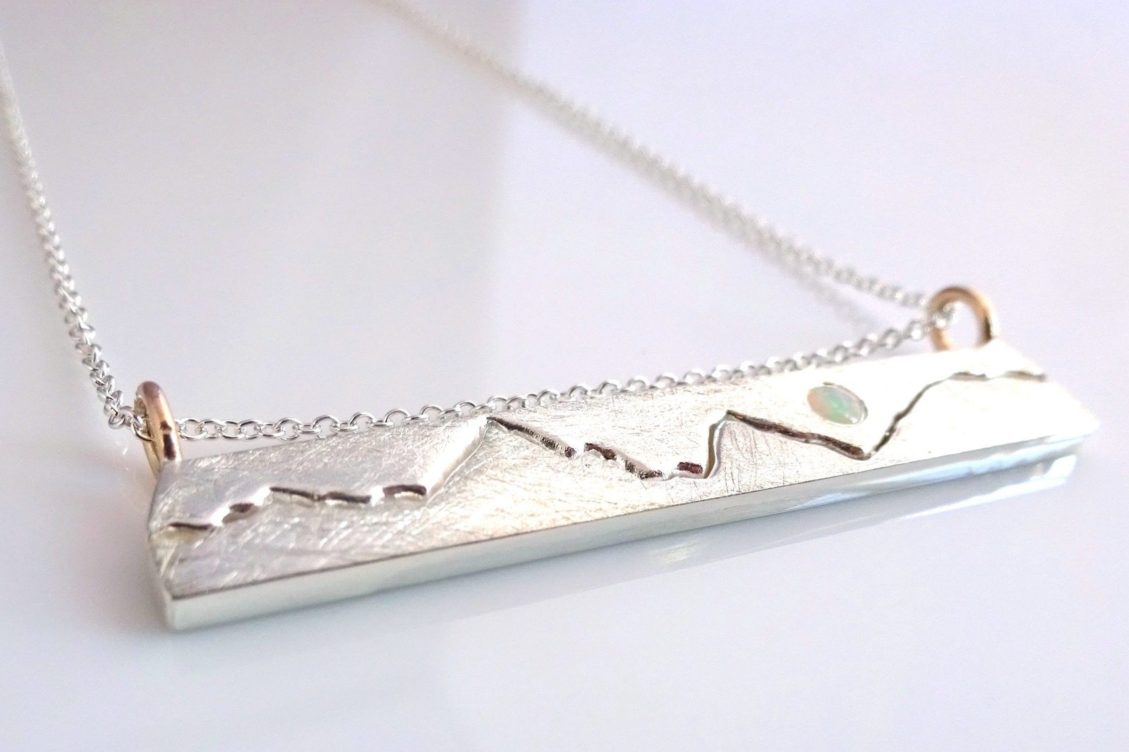 After you’ve placed your order, please send us a message with an image of the mountain range you would like featured on your mountain bar necklace along with your desired gemstone (if applicable).