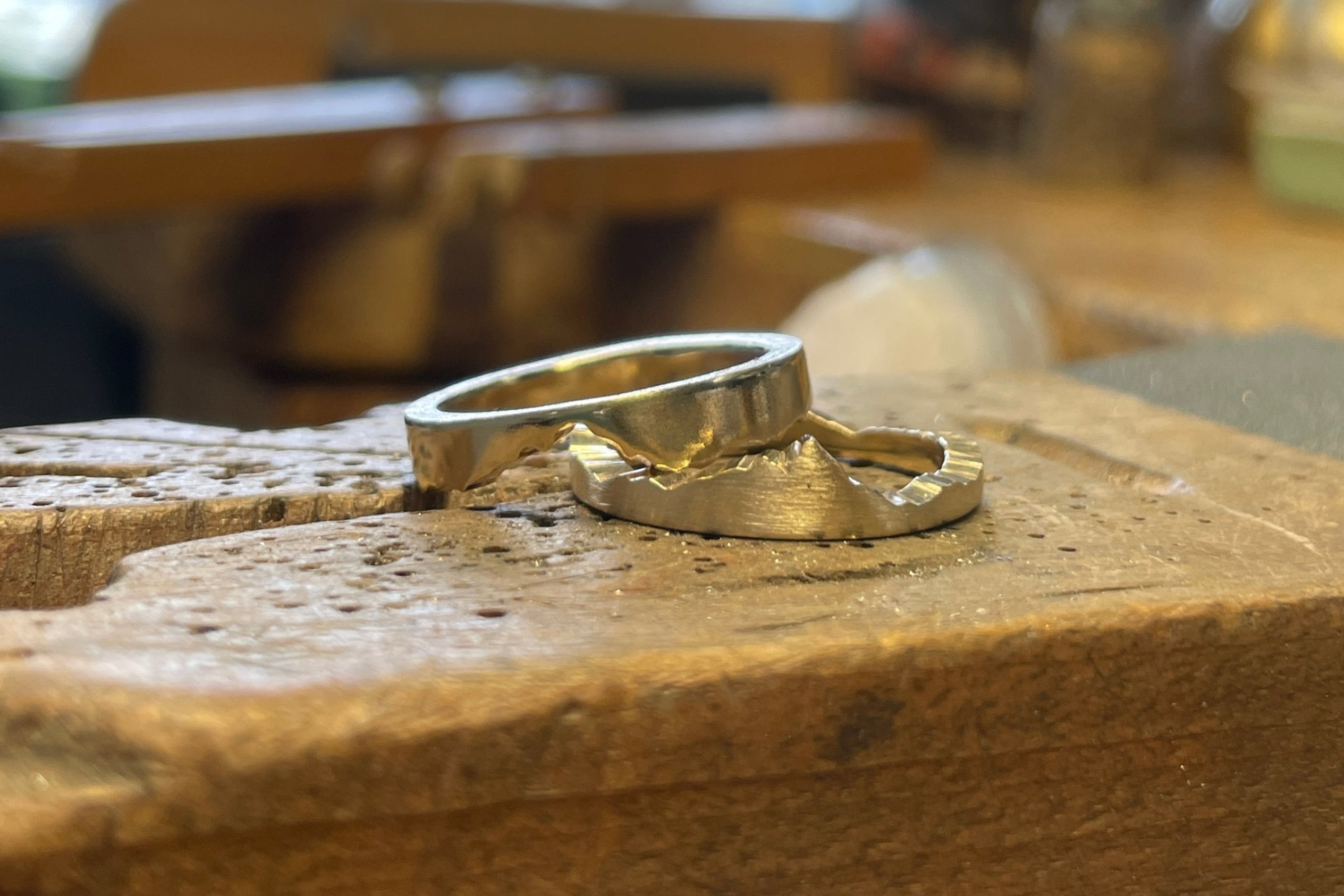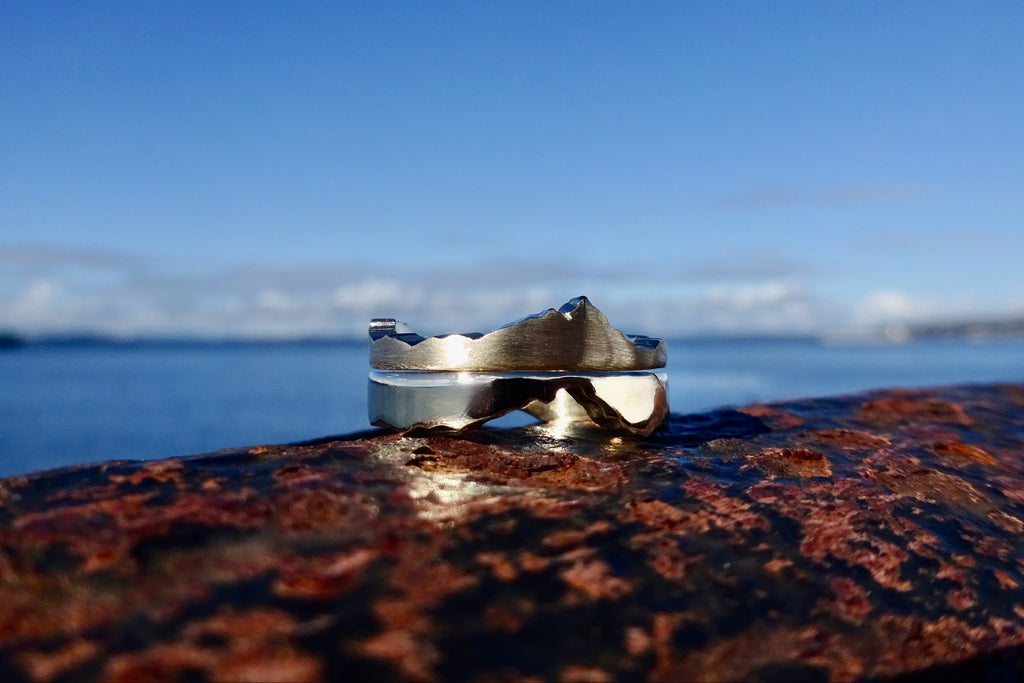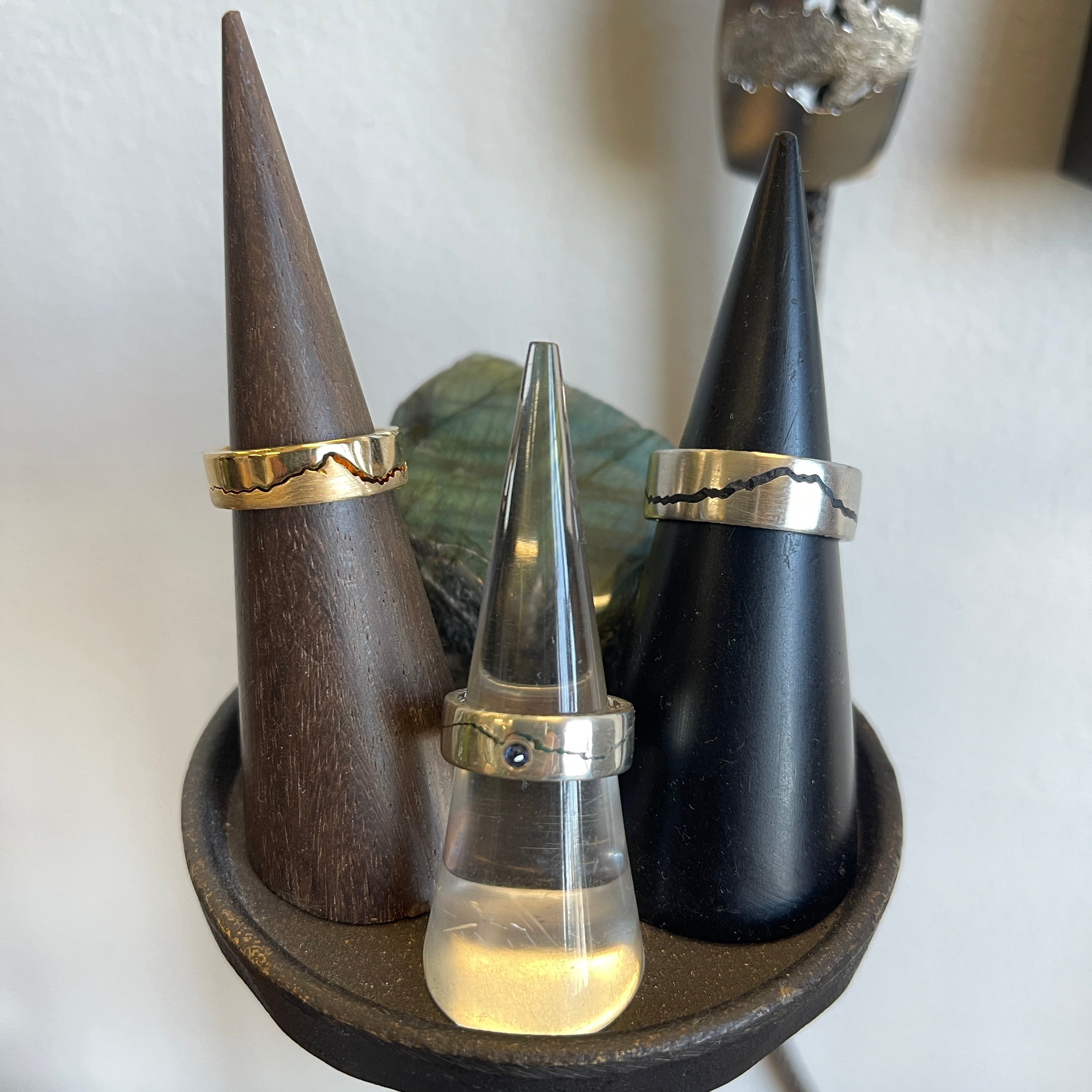 Crafted with precision and meaning, this ready-to-ship ring is the perfect gift for outdoor lovers, hikers, couples, or anyone looking to symbolize strength and connection. Each ring is individually handcrafted by Michelle Lenáe using recycled precious metal and a whole lot of heart. Mountain Love.