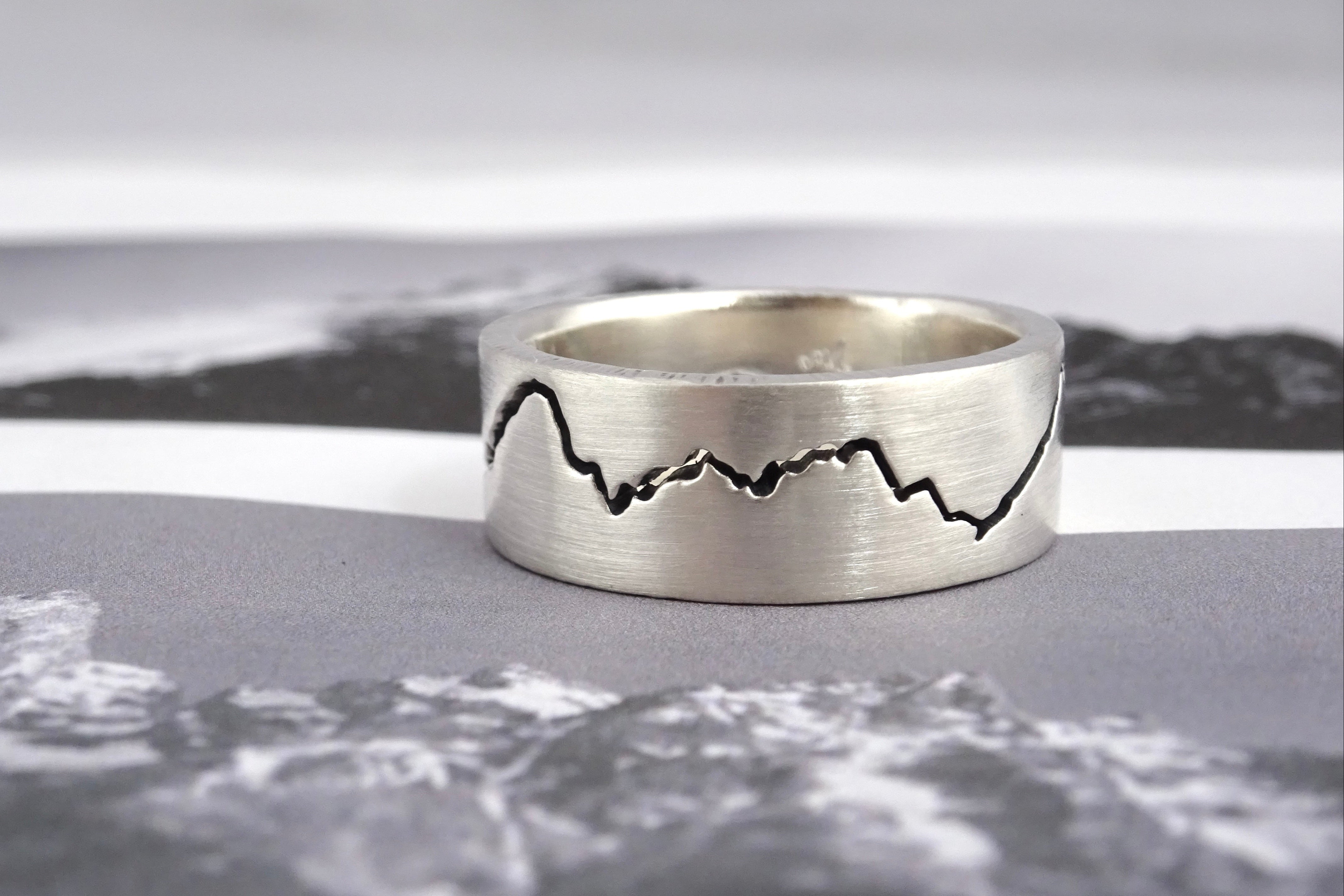 Each ring is meticulously handcrafted with a mountain range of your choice from recycled precious metals so you can treasure your mountain memories for a lifetime.