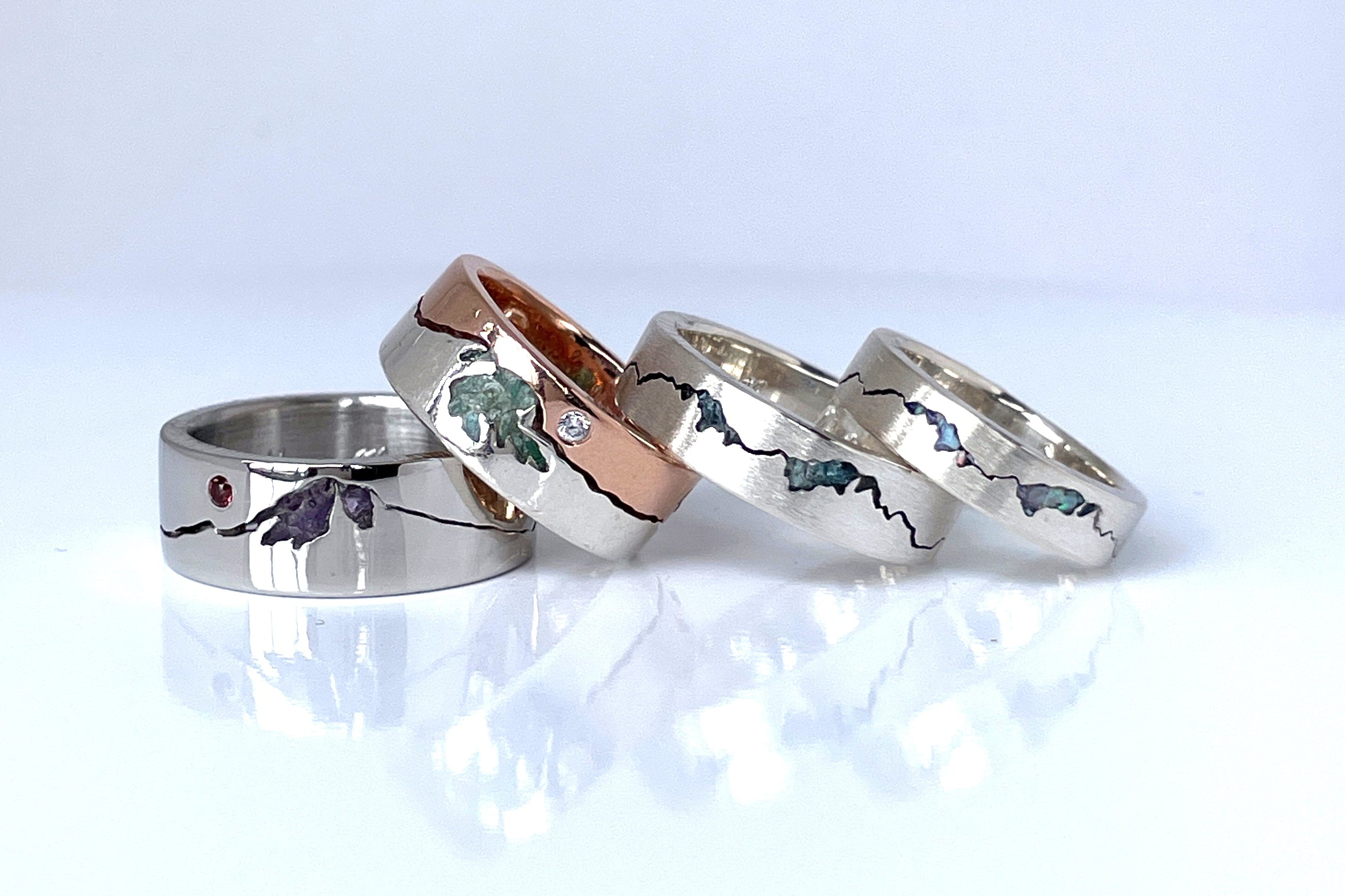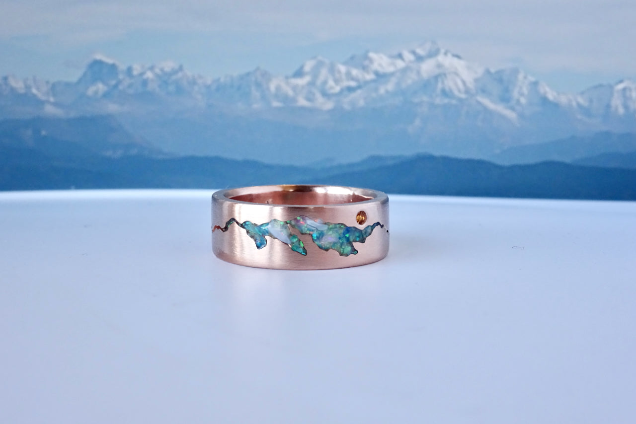 After you’ve placed your order within a few weeks we will reach out to you to begin finalizing the designs for your Rainier summit ring. If you have rock from your mountain climb and you would like to use it for the inlay in your summit, please contact Michelle Lenae.